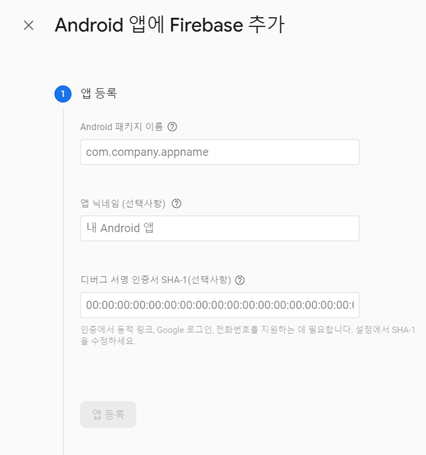 1. Firebase 에 앱 등록하기